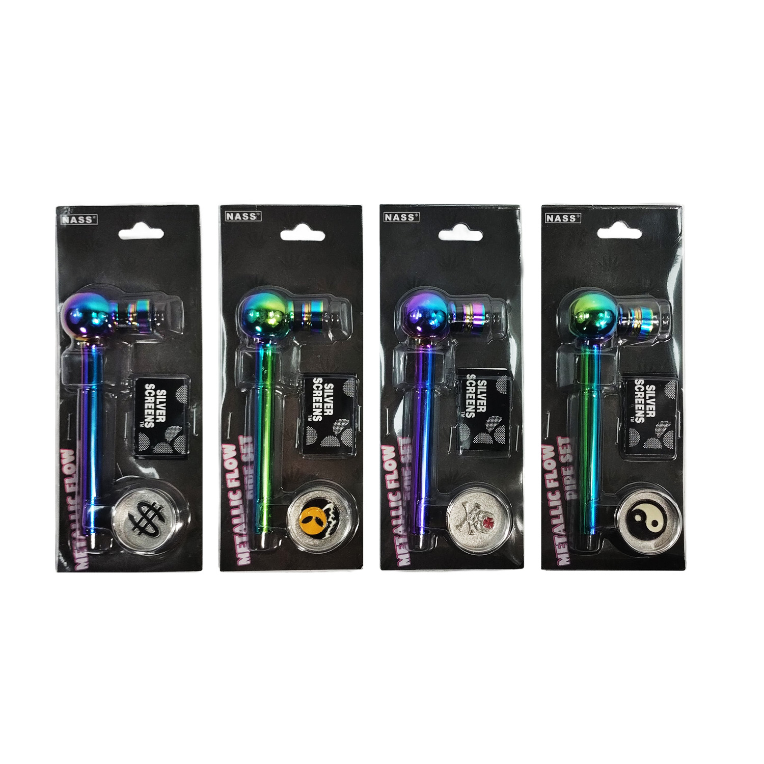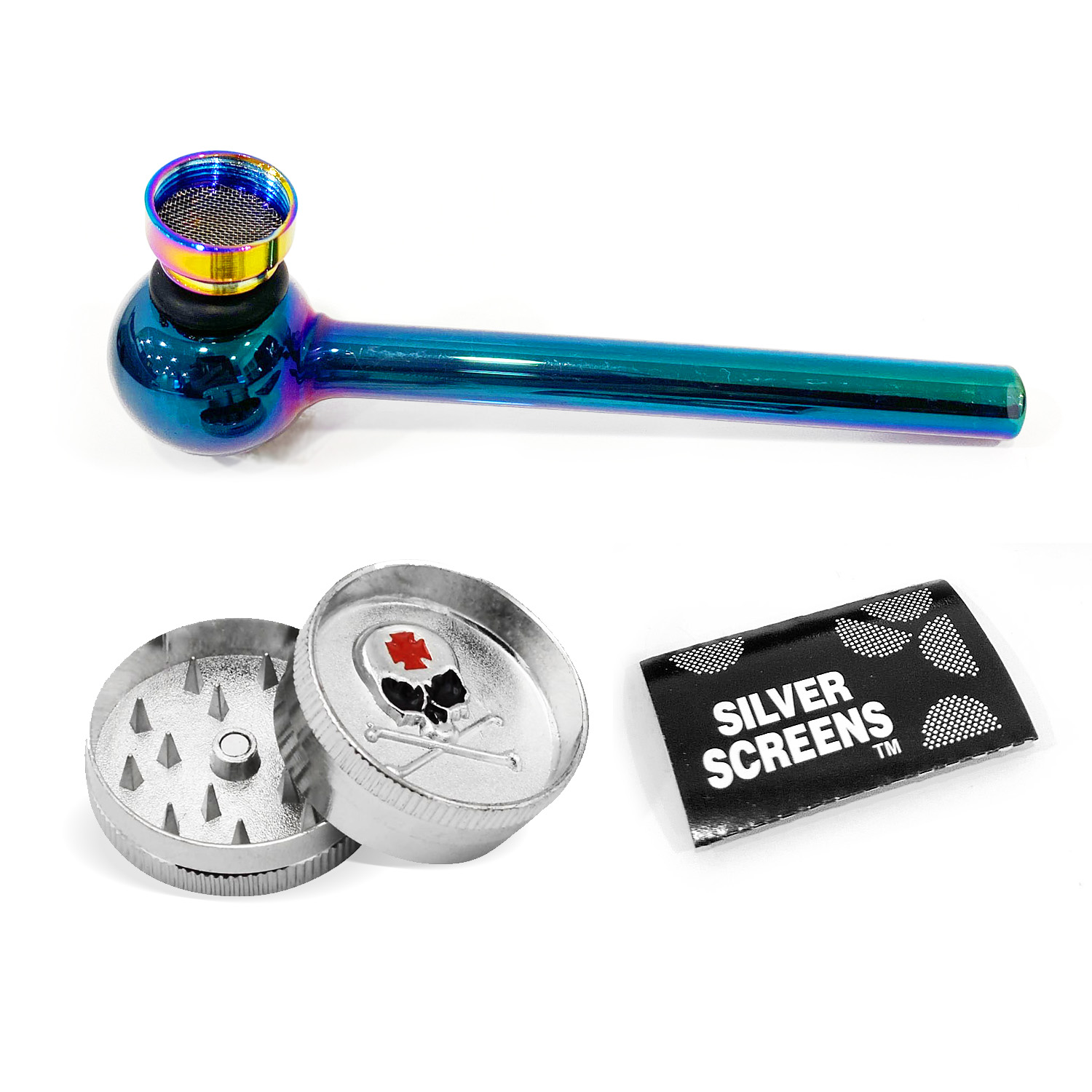 Metallic Flow Pipe Set 3in1 – Glaspfeife, Metallgrinder & Siebe im stylischen Komplettset