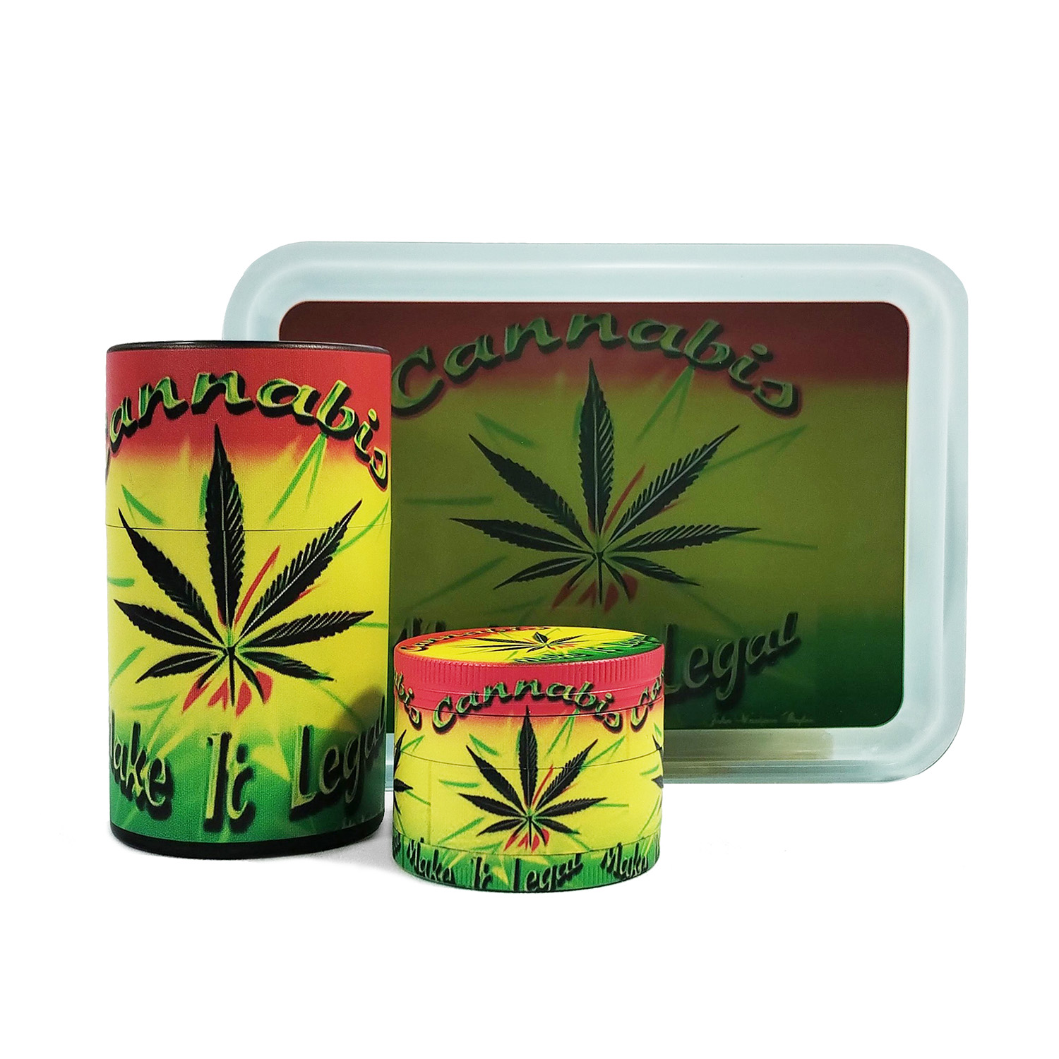 Zen Tray (Rolltablett): Das praktische Tablett im bunten Rasta-Design mit Hanfblatt-Motiv bietet dir genug Platz zum Rollen, Sortieren und Vorbereiten – ganz ohne Chaos.