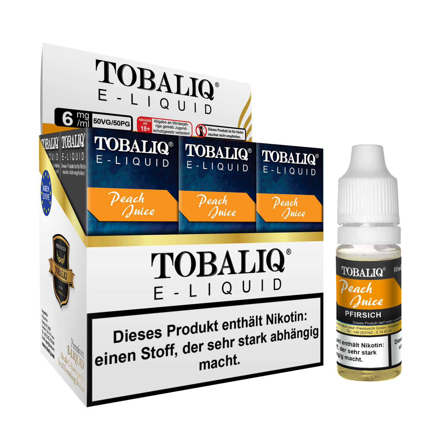 TOBALIQ E-Liquid “Peach Juice” ist eine perfekte Kombination aus saftigen Pfirsichen und süßem Nektar, die dir ein intensives und fruchtiges Dampferlebnis bietet. Das Aroma wurde sorgfältig zusammengestellt, um den Geschmack von frisch gepflückten, sonnengereiften Pfirsichen perfekt einzufangen. Beim Dampfen kannst du eine subtile Süße und einen erfrischenden Fruchtgeschmack erwarten, der deine Sinne verwöhnt und für eine angenehme Entspannung sorgt. Das “Peach Juice” E-Liquid ist ideal für alle, die sich nach einem fruchtigen und leckeren Dampferlebnis sehnen. Probier es aus und lass dich von diesem einzigartigen Geschmack verführen!