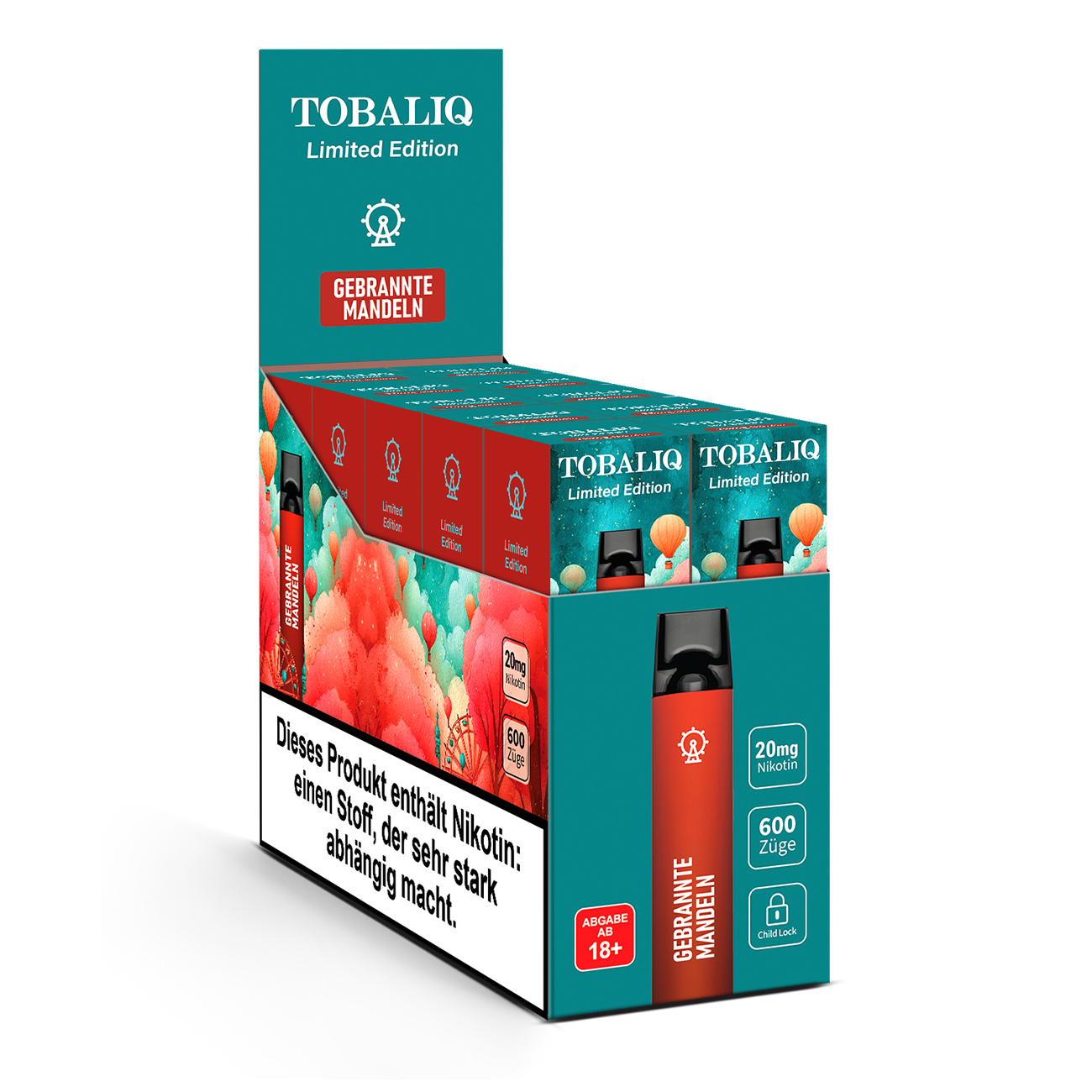 TOBALIQ Vape Limited Edition 10er Display – 20mg Nikotin – Gebrannte Mandeln