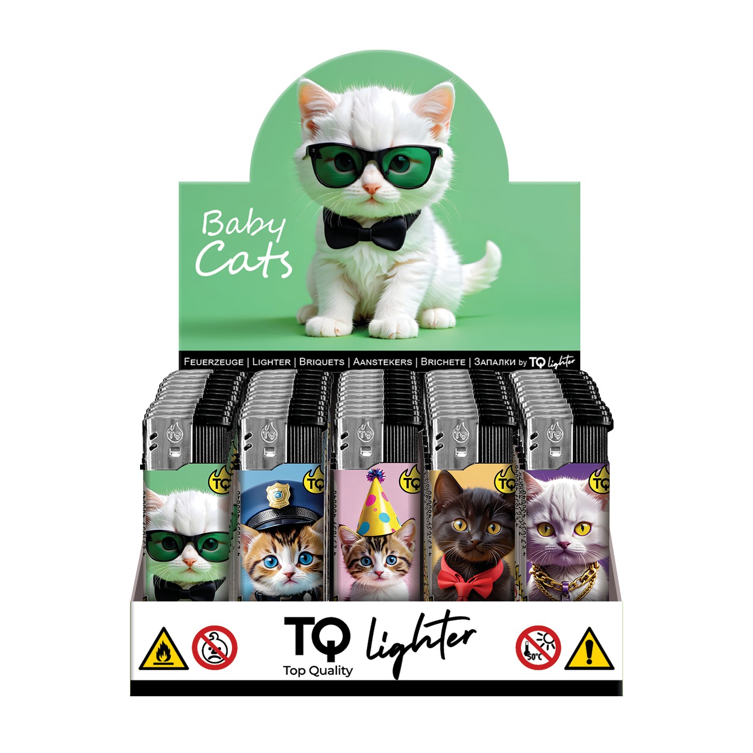 50 Motiv-Feuerzeuge, verpackt im Thekendisplay