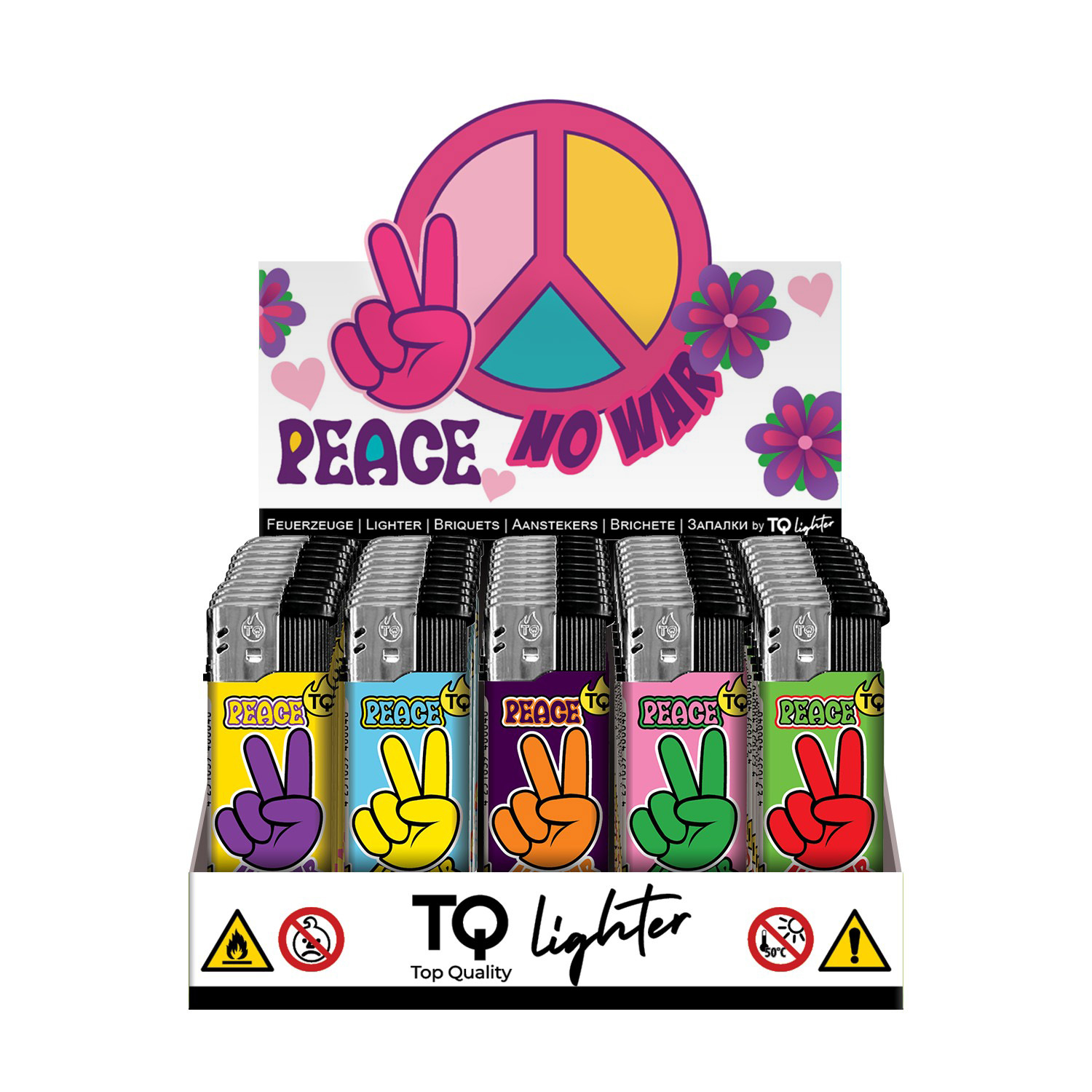 50 Motiv-Feuerzeuge, verpackt im Thekendisplay